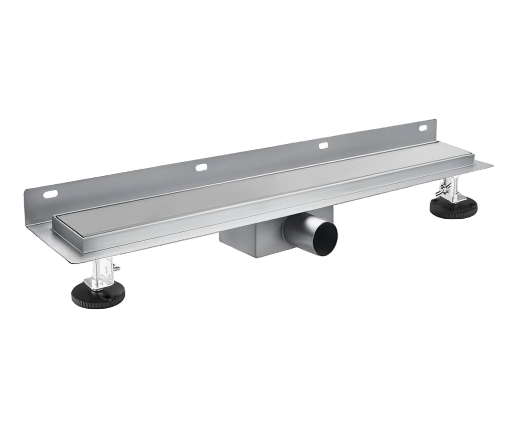 Bestehend aus Duschrinnenkorpus in Edelstahlmit verstellbaren FüBen Edelstahlabdeckung in versch.Dekoren -Geruchsverschluss-Dichtvlies -Abflussadapter -Haarsieb -Haken zur Abdeckungsentnahme