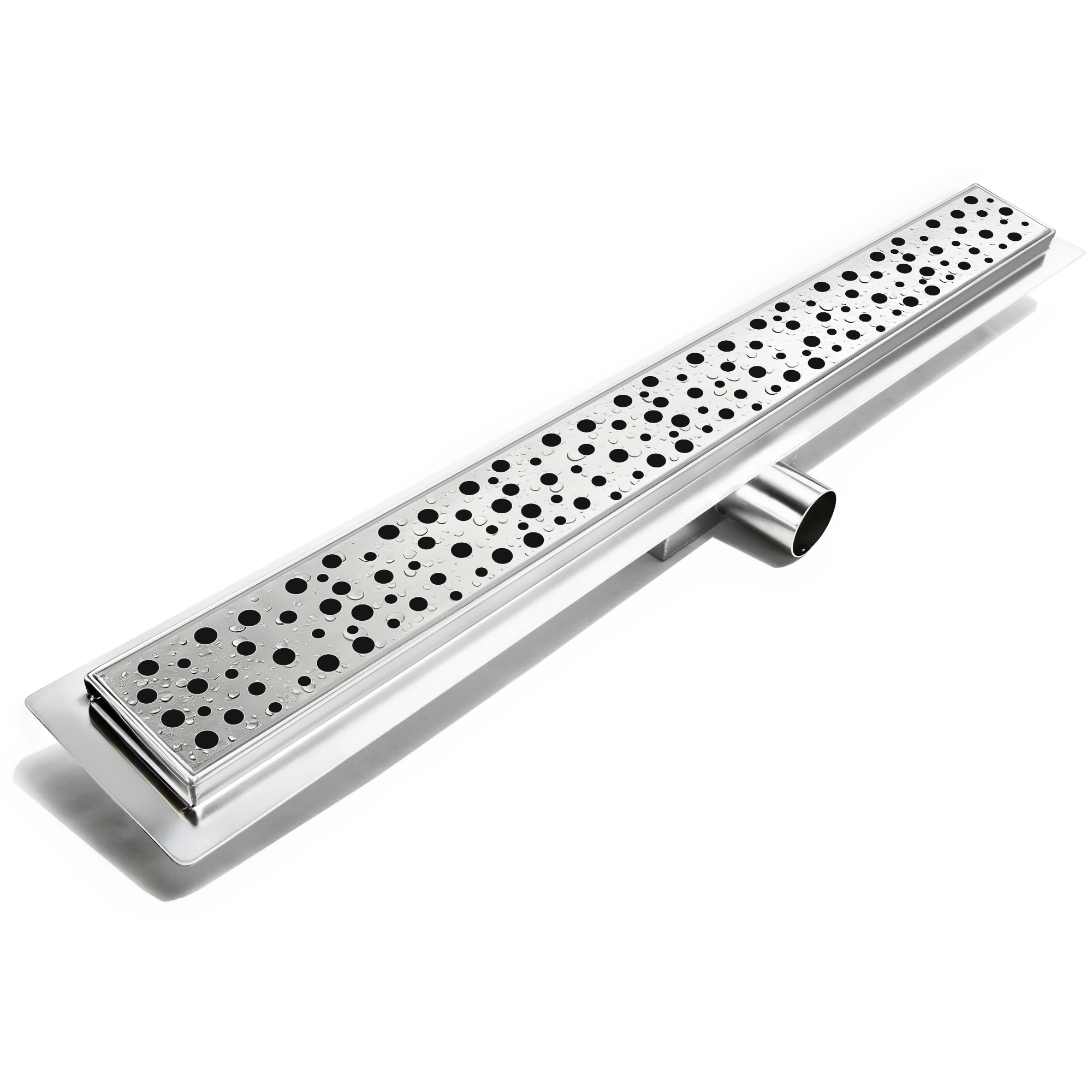 Bestehend aus Duschrinnenkorpus in Edelstahlmit verstellbaren FüBen Edelstahlabdeckung in versch.Dekoren -Geruchsverschluss-Dichtvlies -Abflussadapter -Haarsieb -Haken zur Abdeckungsentnahme