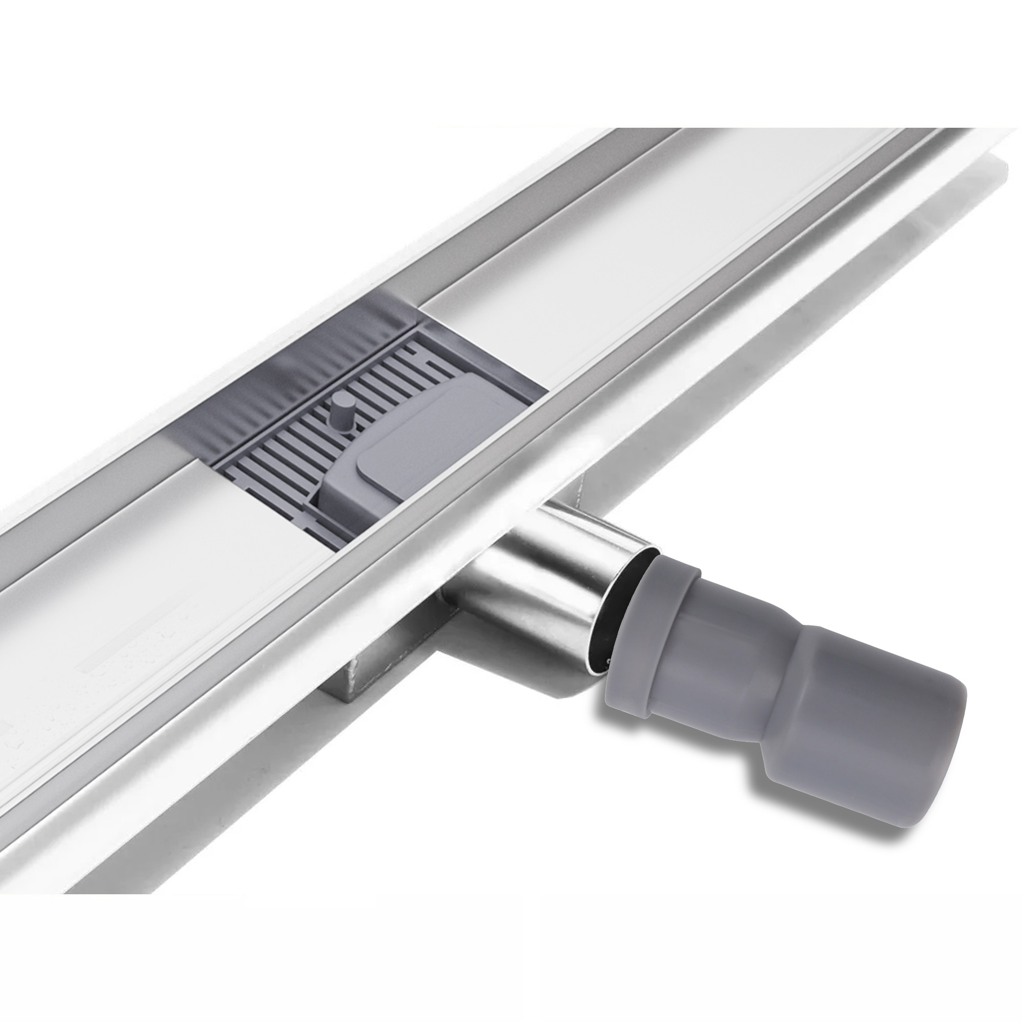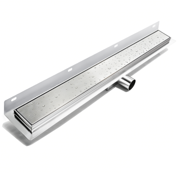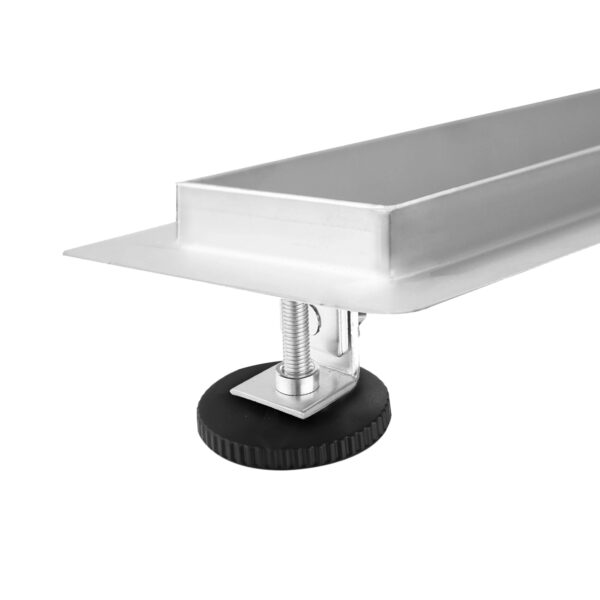 Bestehend aus Duschrinnenkorpus in Edelstahlmit verstellbaren FüBen Edelstahlabdeckung in versch.Dekoren -Geruchsverschluss-Dichtvlies -Abflussadapter -Haarsieb -Haken zur Abdeckungsentnahme