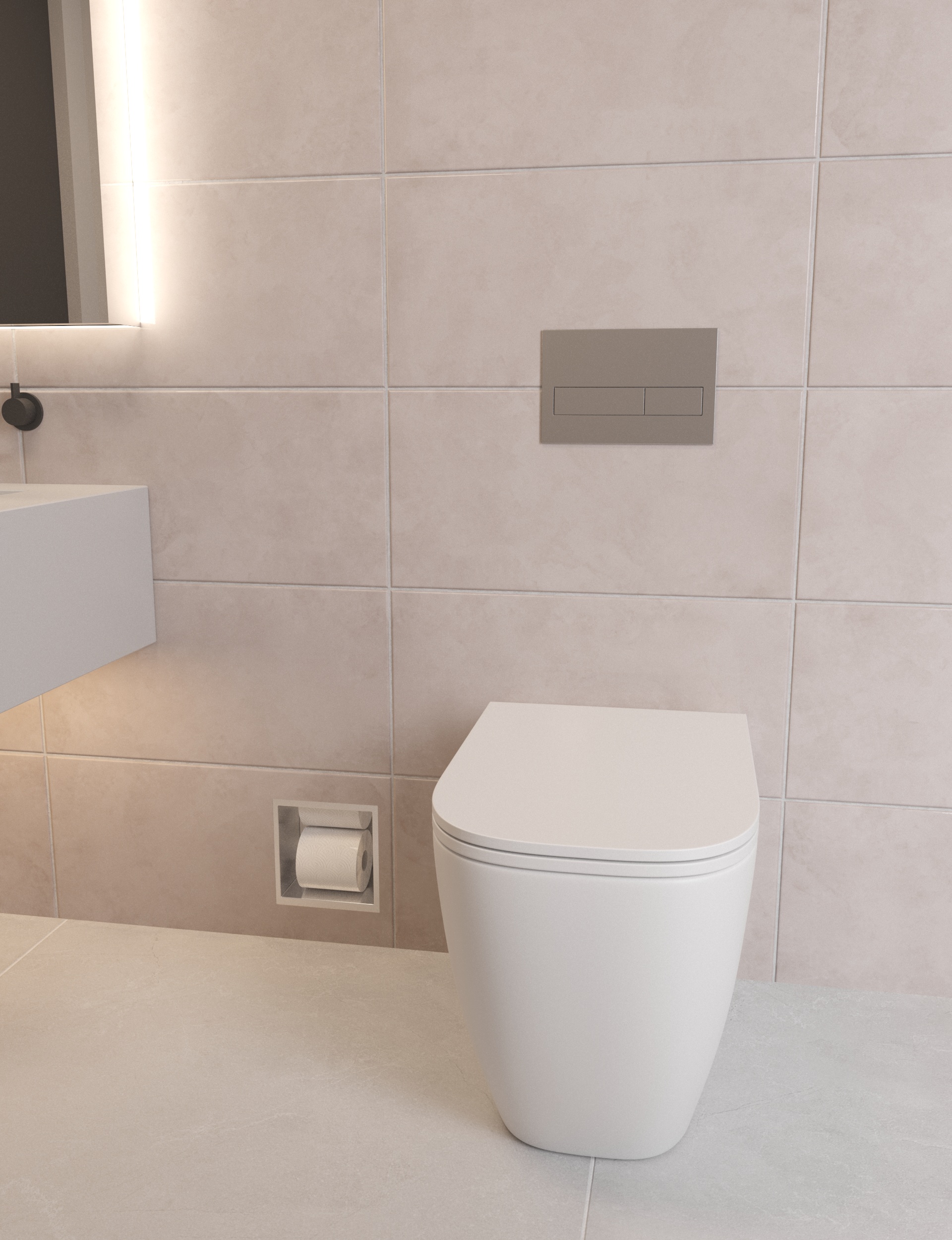 Das schlichte Design der Wandnische mit ihrem dezenten und einfachen Erscheinungsbild fügt sich harmonisch in die Wand ein und eignet sich zur Aufbewahrung von Alltagsgegenständen wie Taschentüchern. Dadurch wirkt das Badezimmer ordentlicher und übersichtlicher.